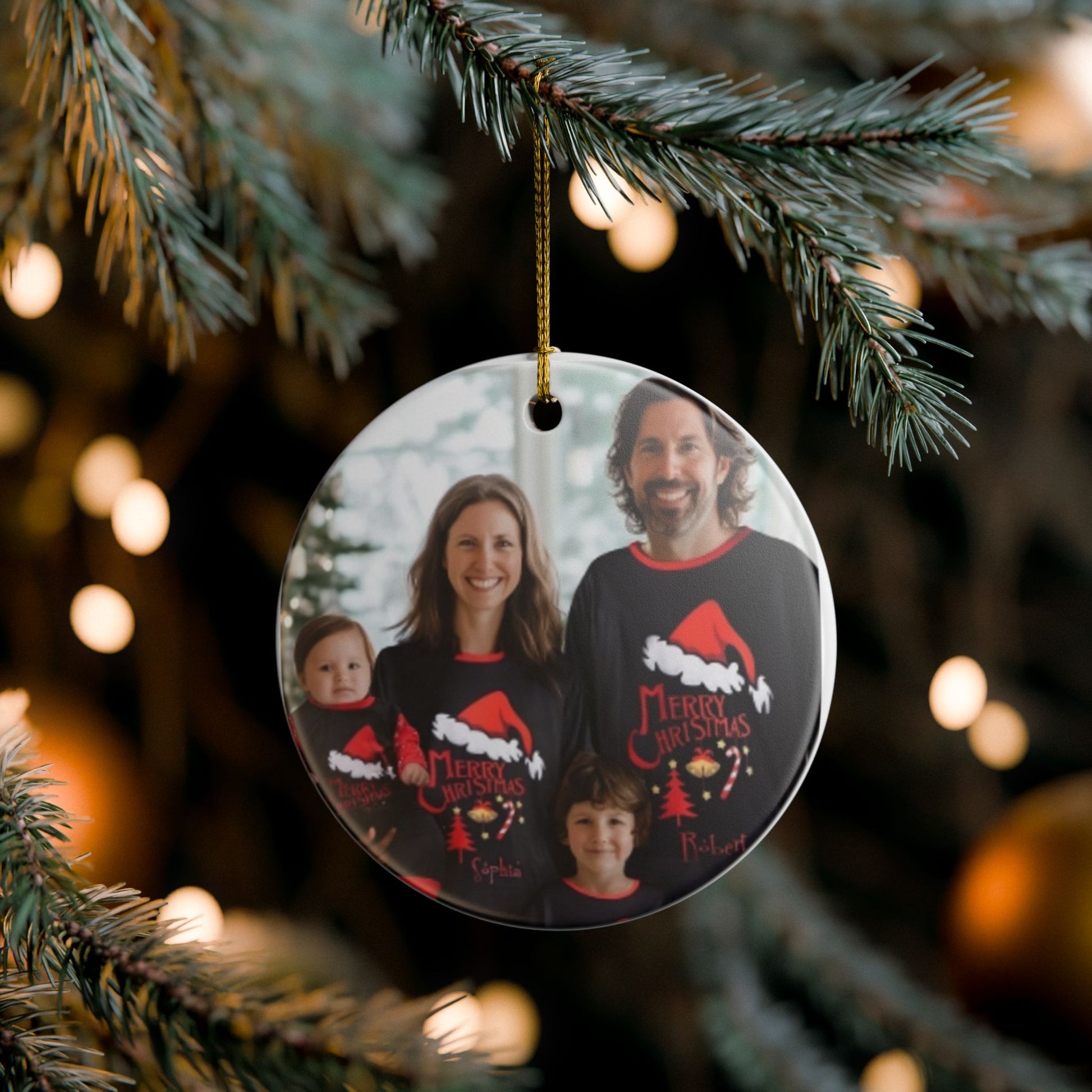 Ceramic Christmas Ornament – Personalized Family 'Merry Christmas' Photo Decoration